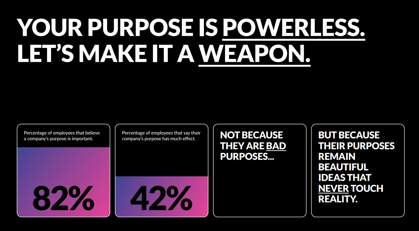 We say: drop the nonsense. Drop the mission. Drop the vision. Keep purpose.